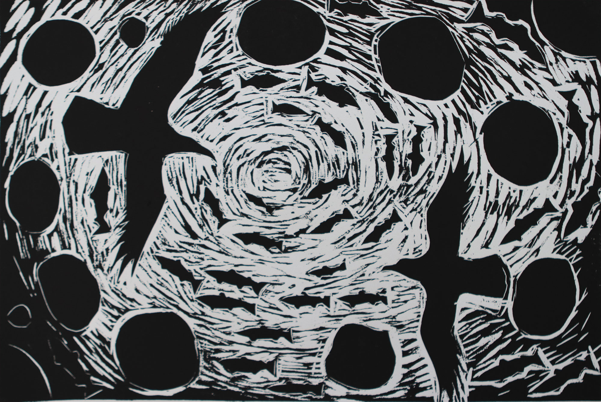 Black Rocks 2024Woodcut ENQUIRE These black rocks are actually white rocks that black birds fly amongst. < GALLERY ← Black bird