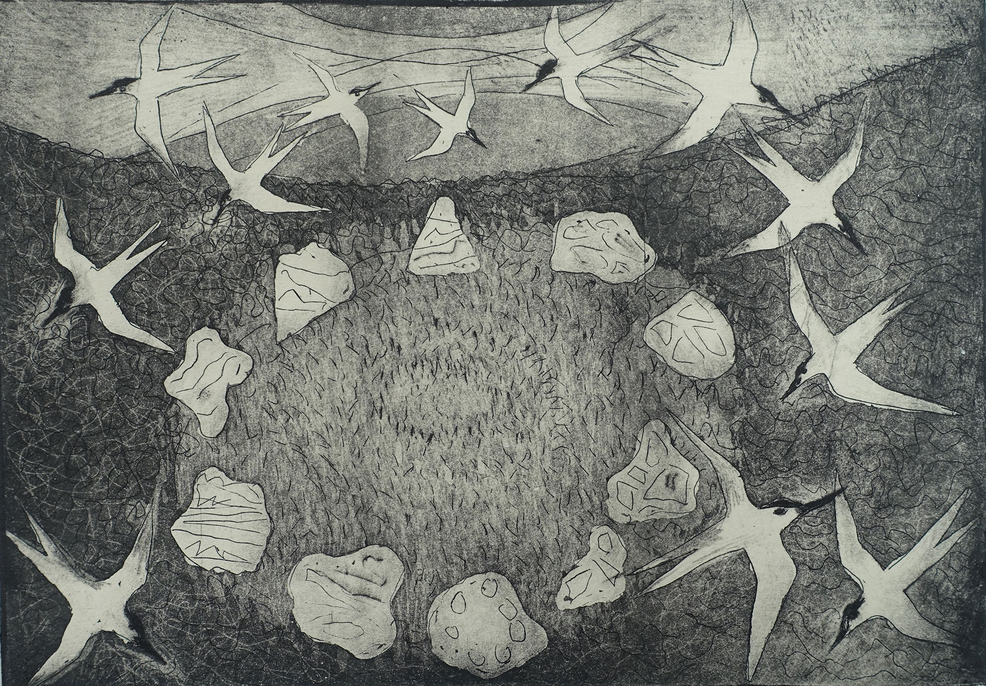 Healing Place Etching ENQUIRE These terns could go any where But it is here they choose to nest < GALLERY ← Nest Entering the Light →