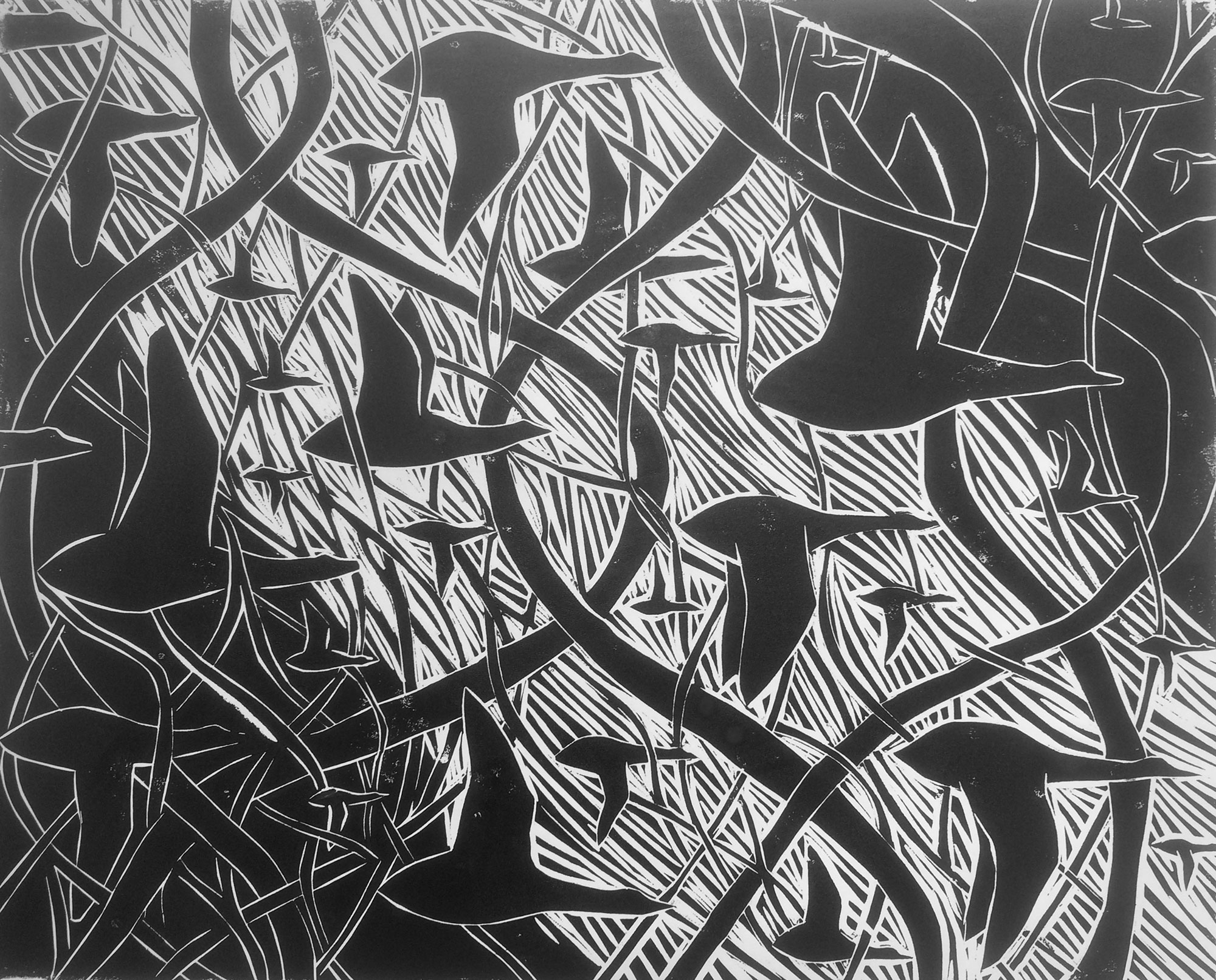 I Dreamt I Saw Geese Flying Through Northern Lights Woodcut ENQUIRE < GALLERY ← Listen I Dreamt I Saw Geese Flying Through Northern Lights II →