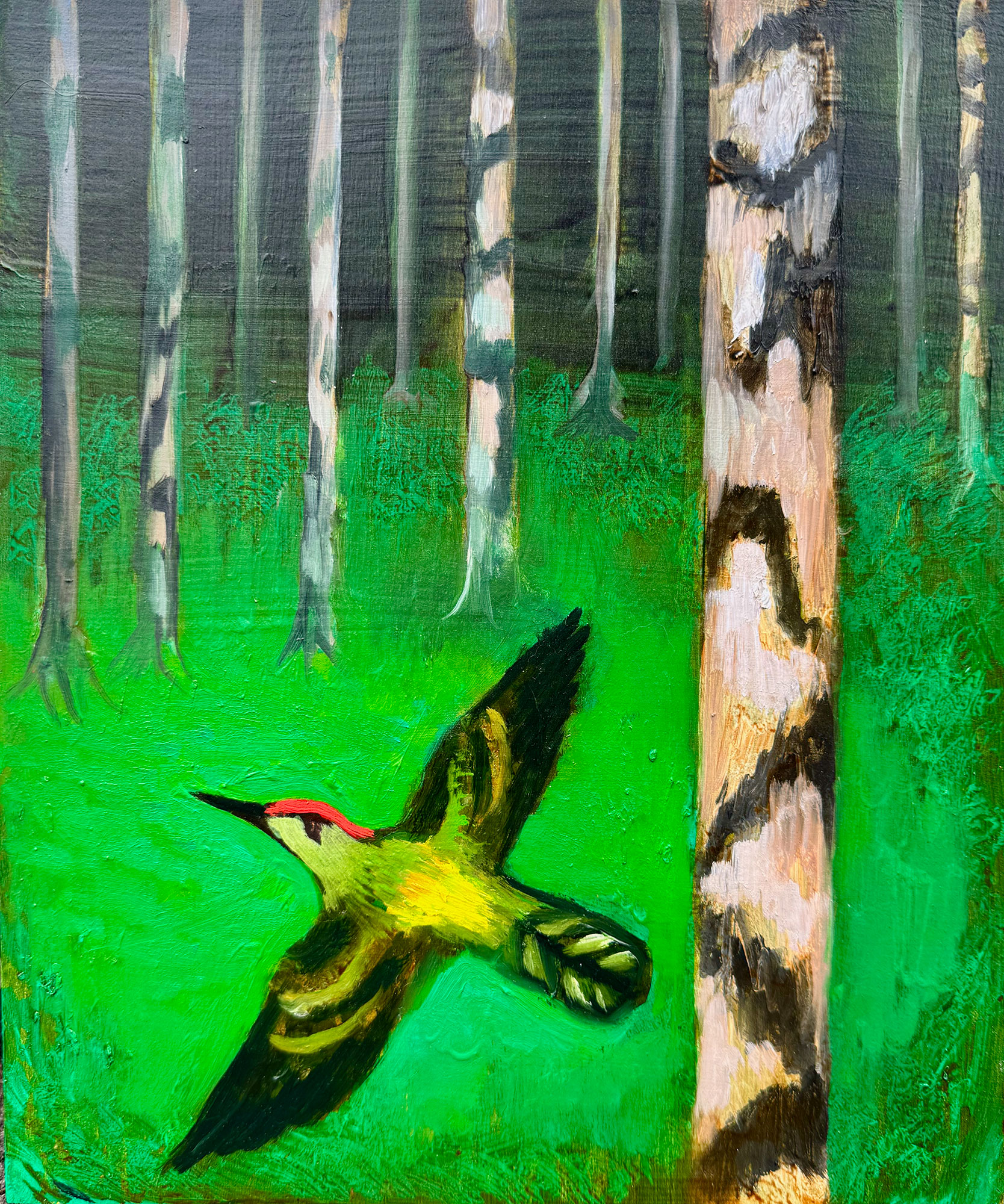The Flight Of the Green Woodpecker 4, Oil, 2024