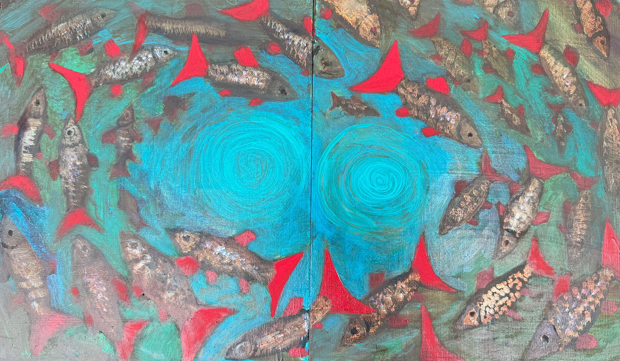 The Lamentation of the Fishes (diptych), Oil, 2024